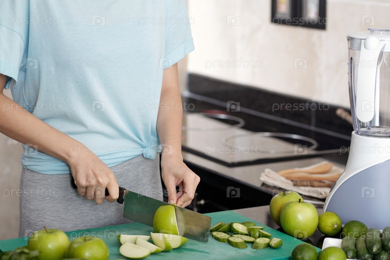 Вырезать яблоко для смузи на кухне