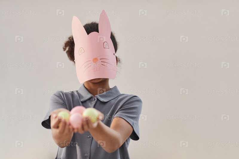 Афроамериканская девушка держит пасхальные яйца Минимальный портрет