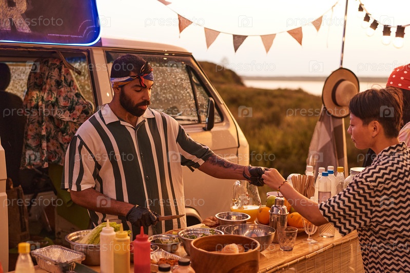 Мужчина, угощающий людей на вечеринке
