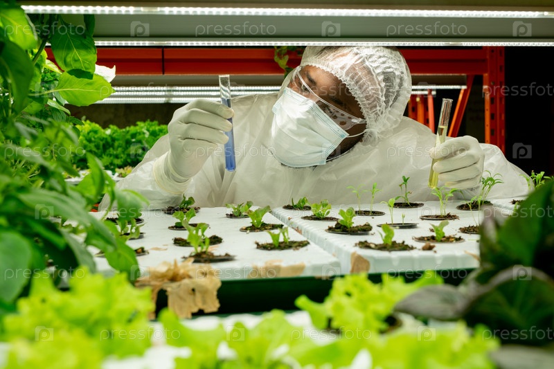 Сельскохозяйственный ученый проводит эксперимент в теплице