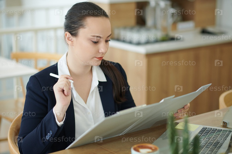 Деловая женщина корректирует документ