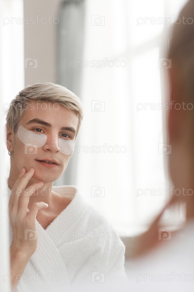 Молодой человек наслаждается рутиной красоты