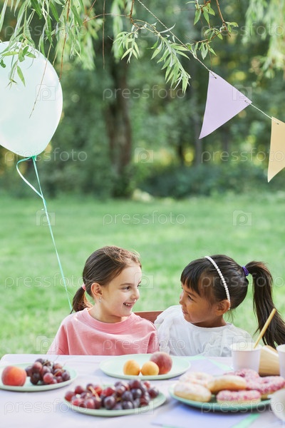 Девочки на вечеринке по случаю дня рождения в открытом воздухе