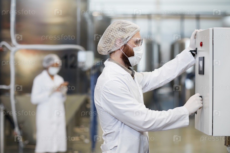 Работник, устанавливающий оборудование на химической фабрике Мужчина