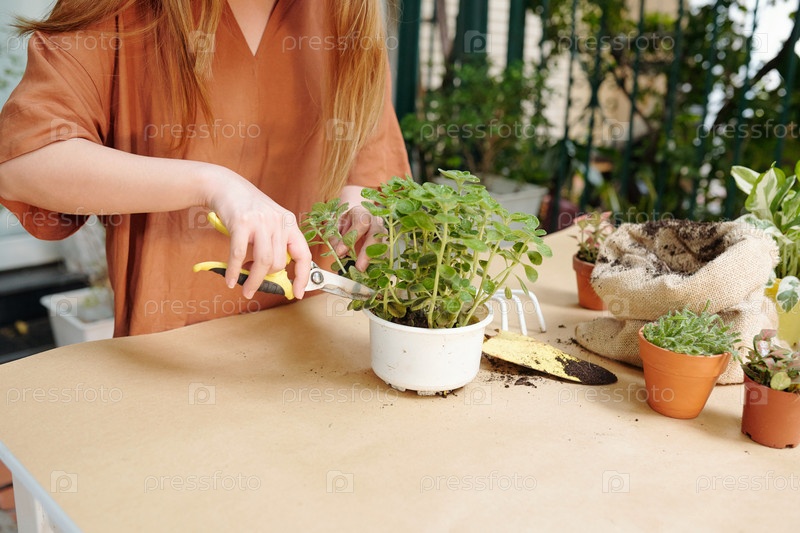 Женщина, режущая мятные стебли