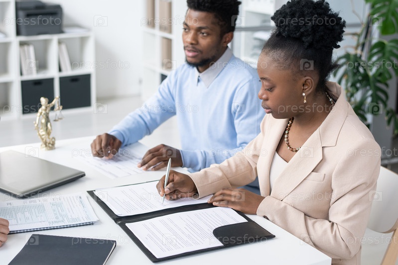 Американская афроамериканская пара подписывает документы на африканский