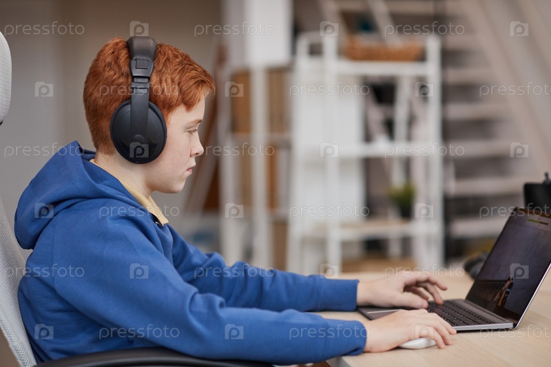 Подросток играет в видеоигру на ноутбуке