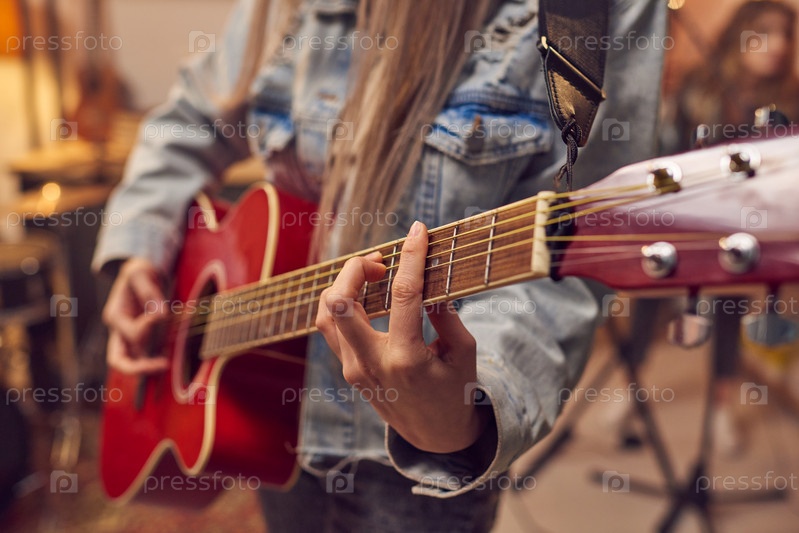 Женщина играет на электрической гитаре