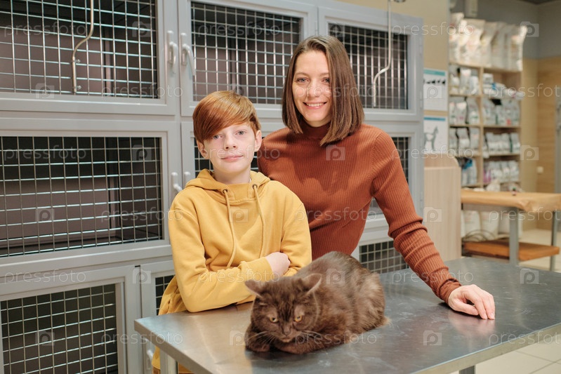 Семья с домашним животным в клинике