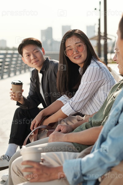 Современные бизнесмены сидят на скамейке во время дискуссии