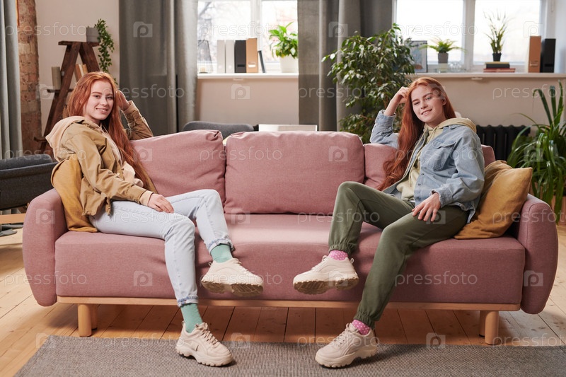 Женские близнецы отдыхают в гостиной