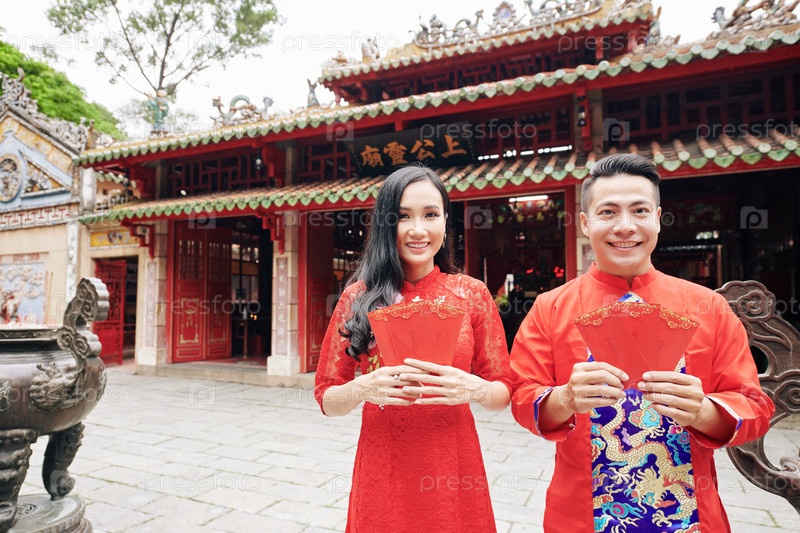 Азиатская пара в традиционных платьях