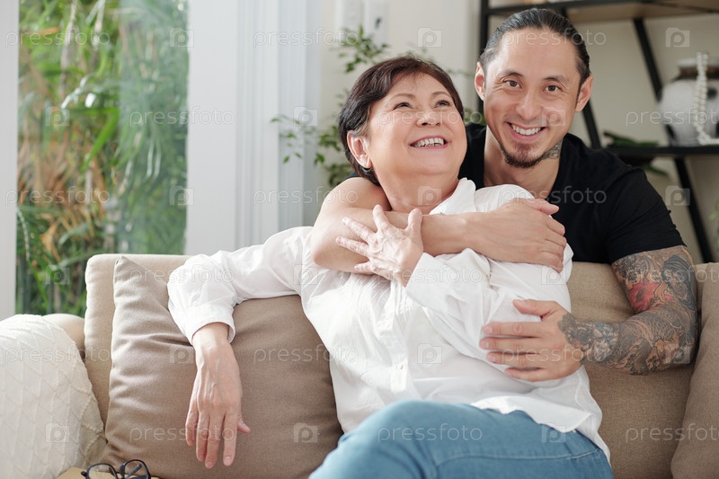 Сын обнимает мать