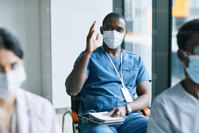 Доктор, носящий маску на медицинском семинаре