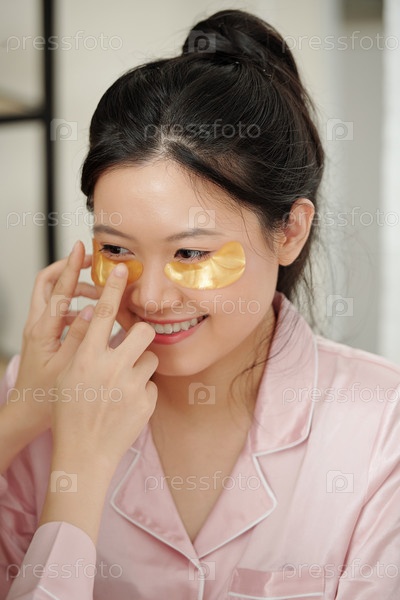 Женщина, наносившая коллагеновые прокладки