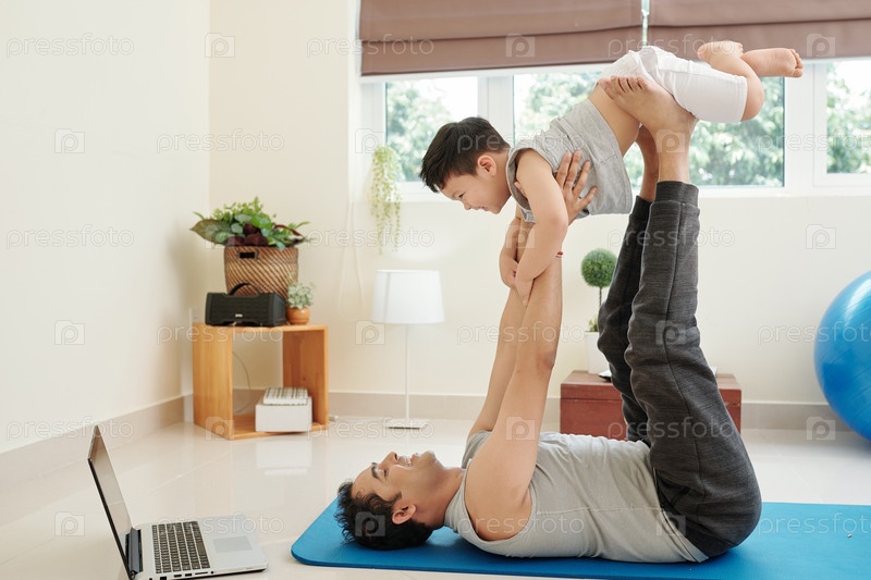 Мужчина играет со смеющимся сыном