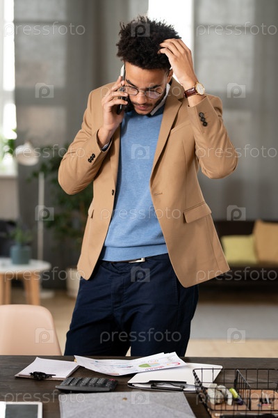Запутавшийся менеджер смешанной гонки звонит по телефону