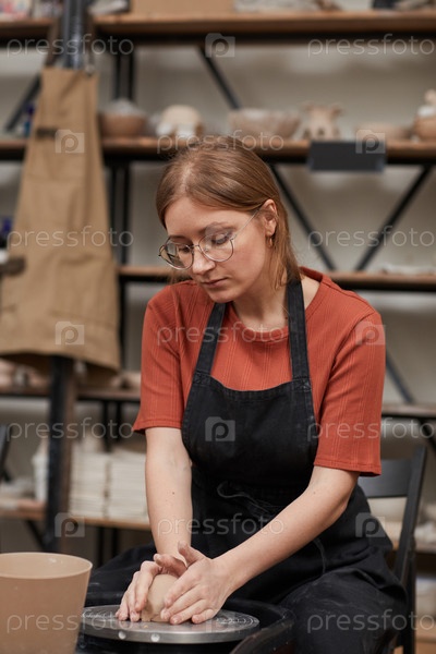 Женщина-ремесленница в керамической мастерской