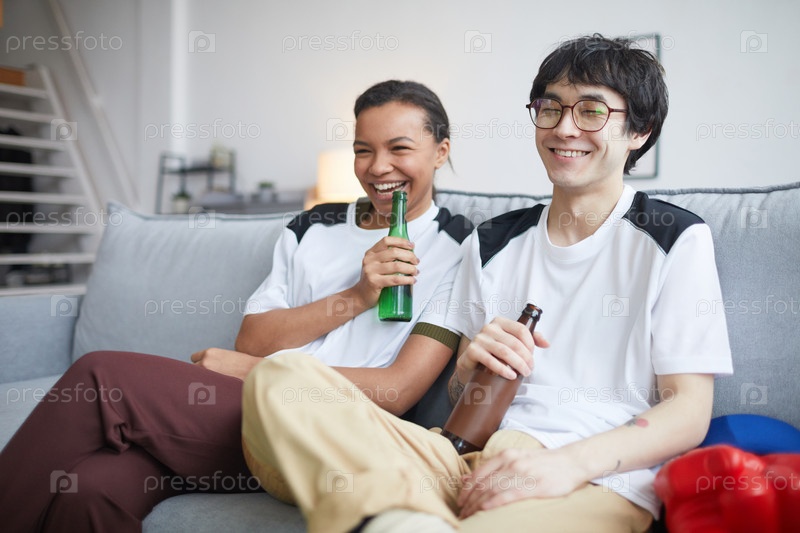 Смеющаяся пара смотрит комедию