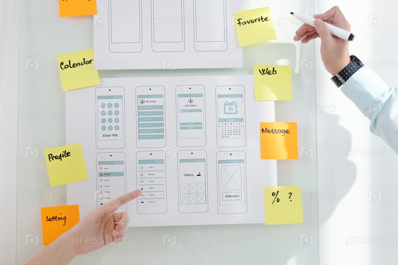 Дизайнеры обсуждают идеи для мобильных приложений UI