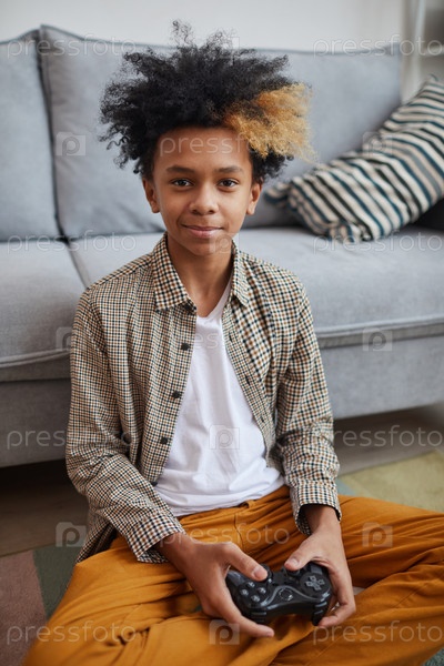 Портрет афроамериканского мальчика, играющего в видеоигры