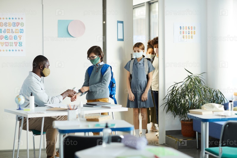 Дети при проверке температуры в школе