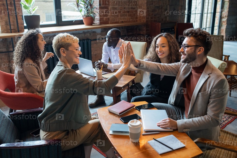 Успешные коллеги дают друг другу пятерку