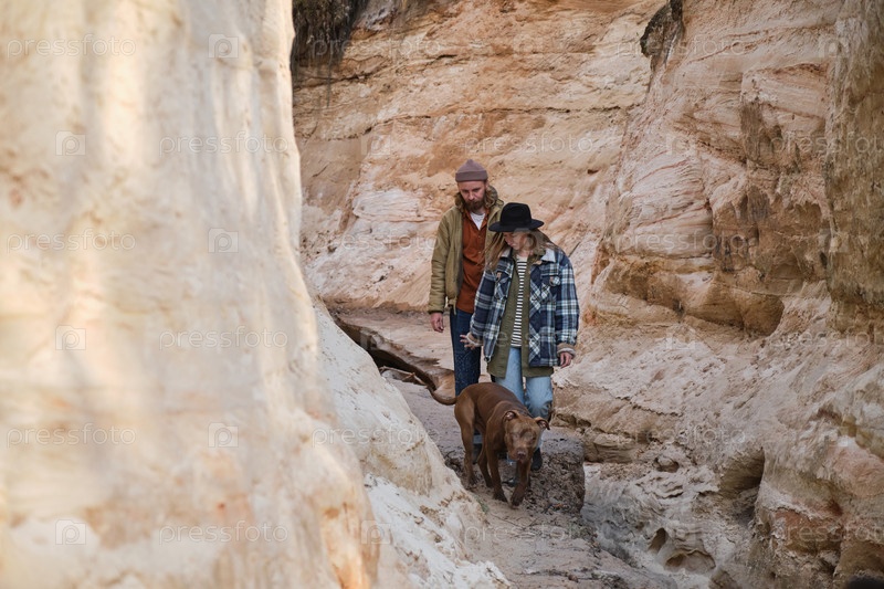 Пара, гуляющая среди скал