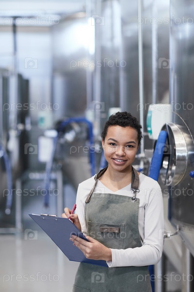 Улыбающаяся афроамериканская женщина работает на пищевой фабрике