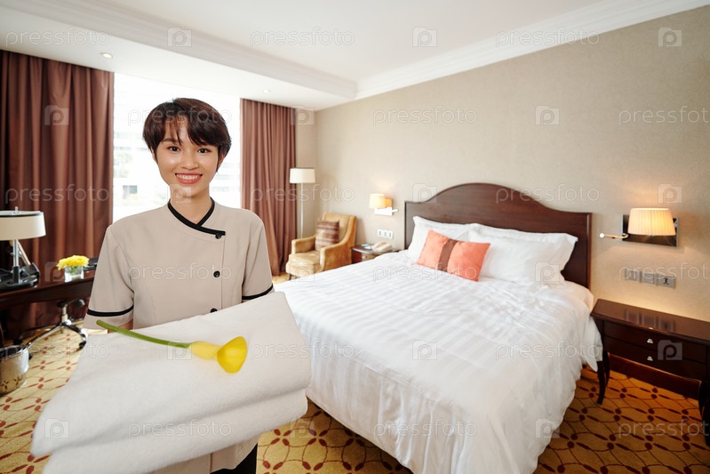 Красиво улыбающаяся молодая горничная