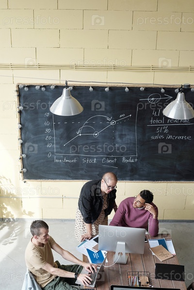 Два молодых дизайнера или экономиста, смотрящих на компьютерный экран во время подготовки к презентации