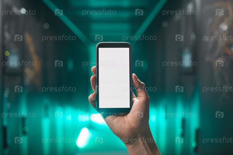 Инженер, удерживающий смартфон в сети