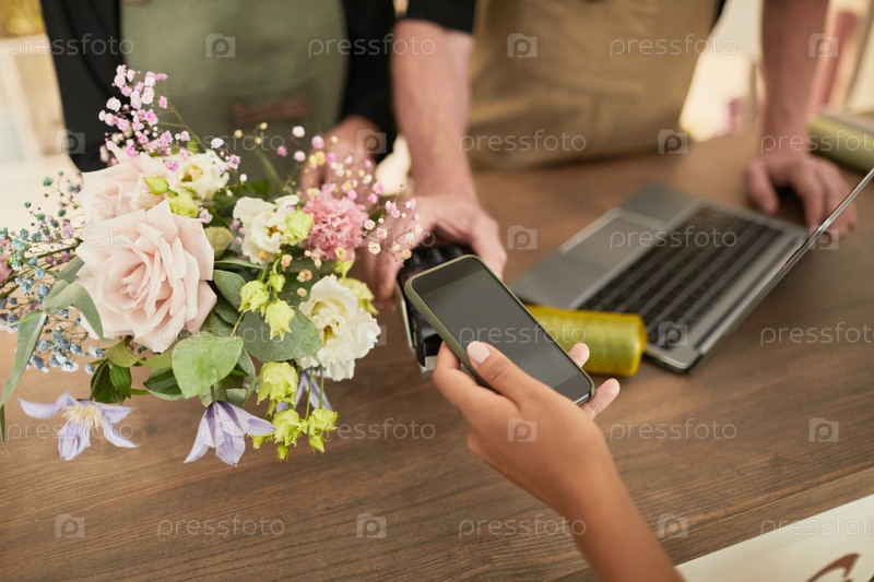 Женщина, платящая в цветочном магазине