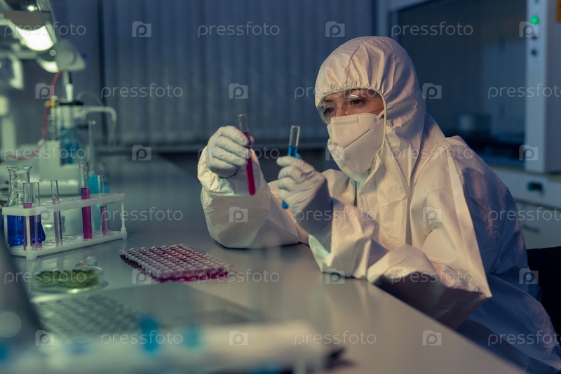 Химик, работающий с образцами во время эксперимента