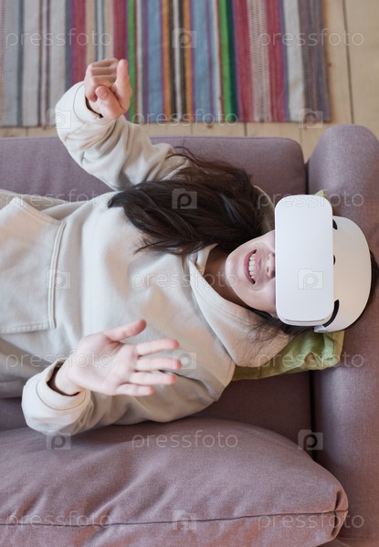 Женщина играет в видеоигры с очками виртуальной реальности