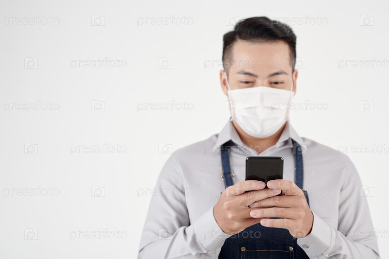 Positive Barista Texting Coworker Позитивный бариста, отправляющий текстовые сообщения