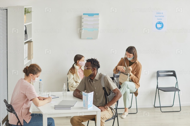 Афроамериканский мужчина регистрируется в центре вакцинации