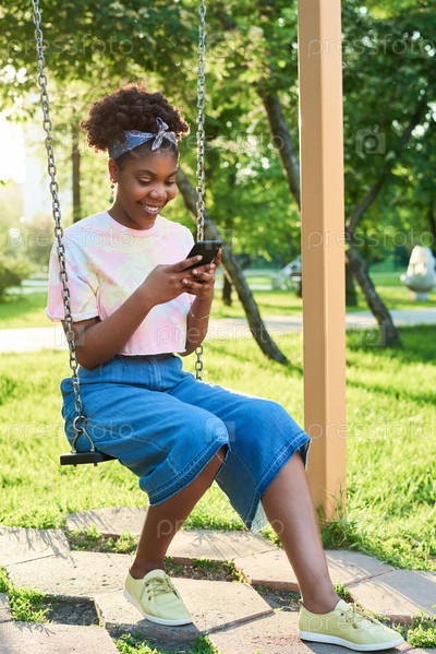Женщина, использующая мобильный телефон в парке