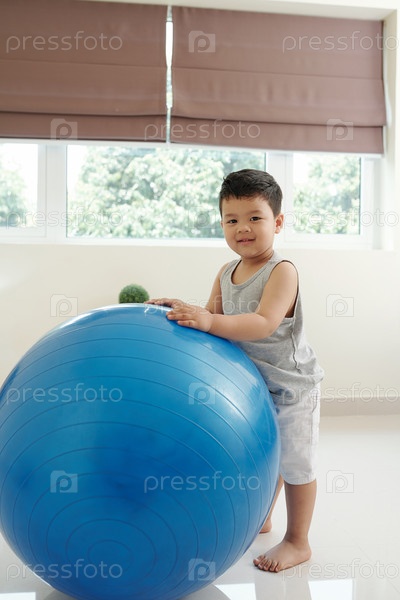 Улыбающийся ребенок с фитнес-боллой