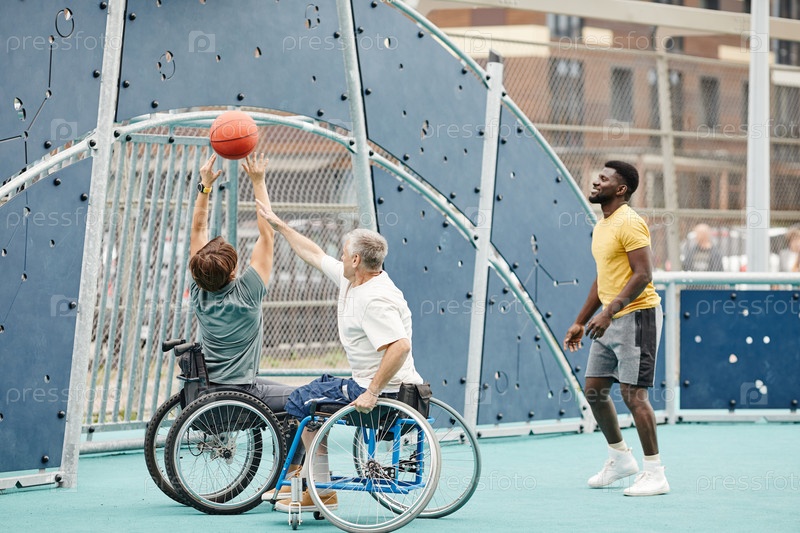 Люди играют в баскетбол вместе на свежем воздухе