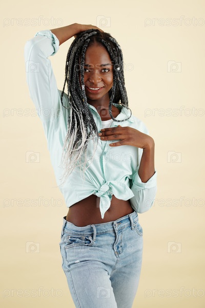 Улыбающаяся молодая женщина с сплетённой прической