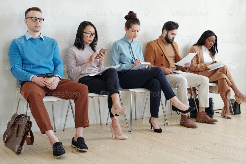 Многонациональные соискатели, сидящие в очереди