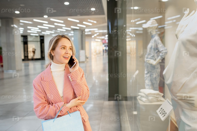 Женщина, разговаривающая по телефону на большом дисплее