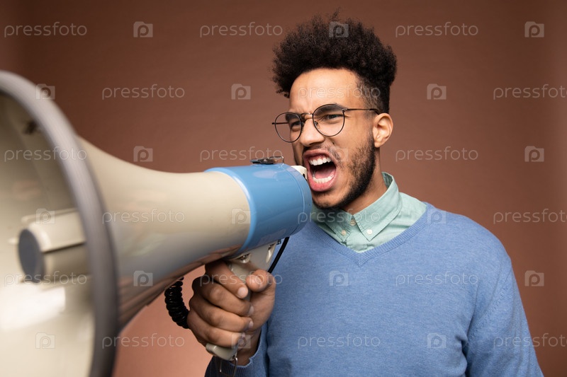 Очень раздраженный молодой бизнесмен или босс в очках и кричащей повседневной одежде