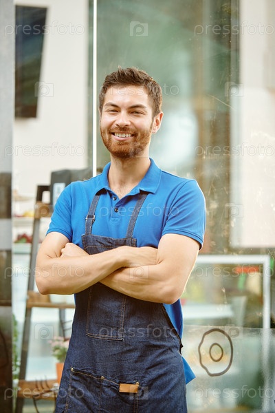 Красивый молодой владелец магазина