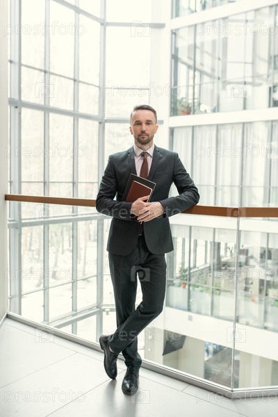 Уверенный молодой бизнесмен в современном зале