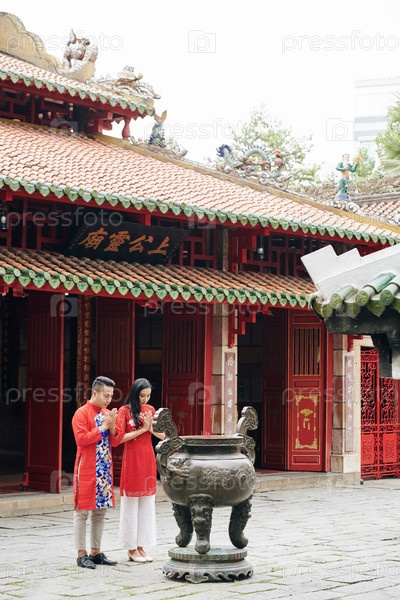 Молодая буддийская пара молится