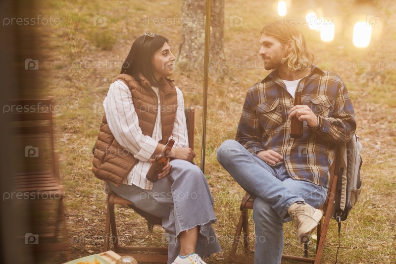 Пара наслаждается жизнью в фургоне осенью