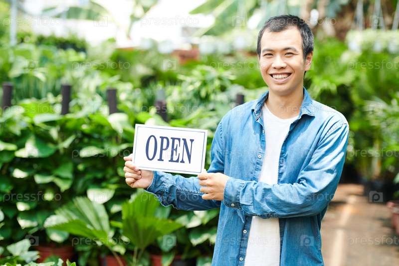 Мужчина открывает питомник растений