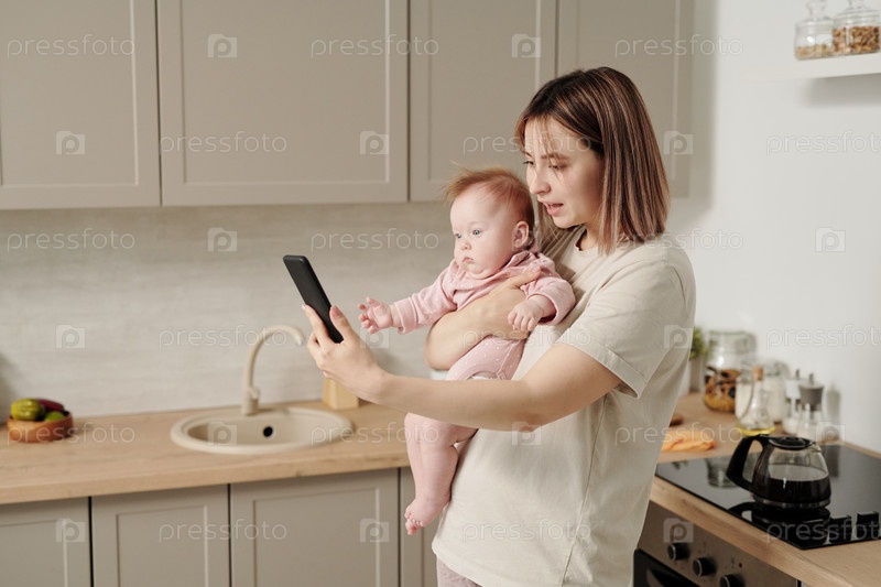 Молодая женщина с дочерью, разговаривающая в видеочате